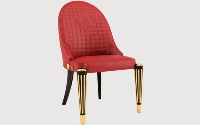 Solid wood frame. Beechwood front legs with brass decoration. Quilted inner body; outer body corset decoration. Multiple densities polyurethane foam padding.