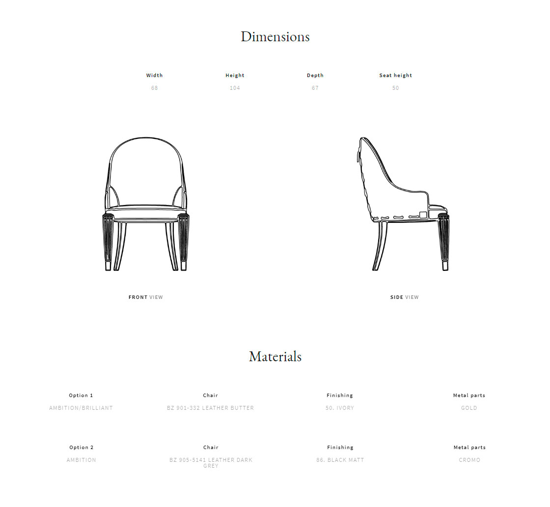 Solid wood frame. Beechwood front legs with brass decoration. Quilted inner body; outer body corset decoration. Multiple densities polyurethane foam padding.