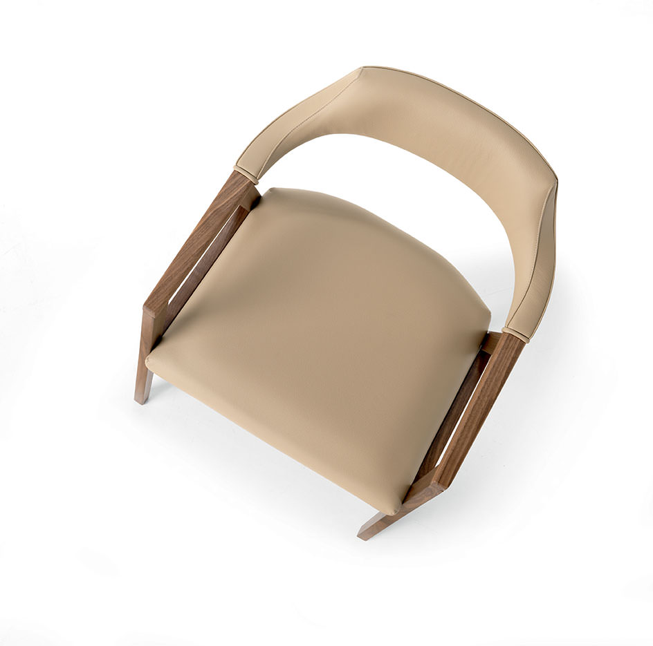 The Leonardo armchair offers maximum comfort thanks to the use of solid wood, a characteristic of Arte Brotto's eco-design furniture, and carefully considered shapes. The walnut wood of this model is combined with the light colors of the leather that covers the seat and backrest. Sitting on such an armchair is a pleasure