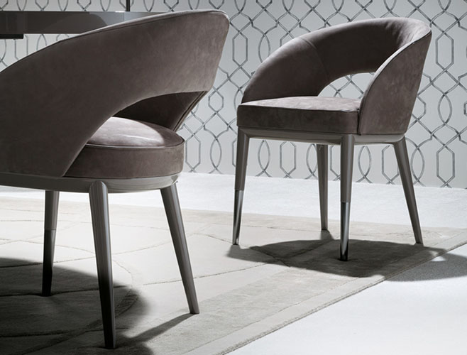 Side chair with high gloss polyester grey lacquer base.