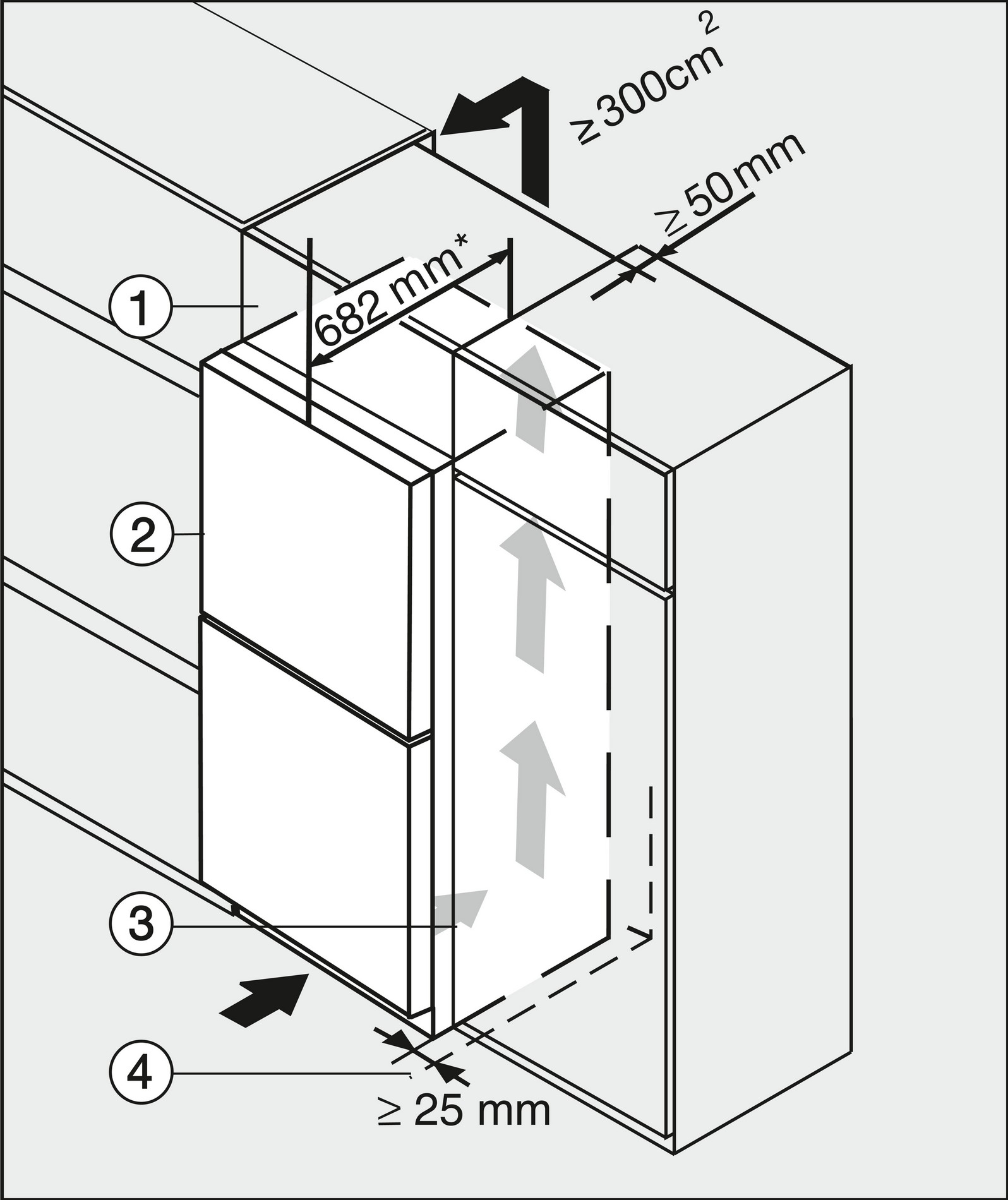 - Niche depth 550mm