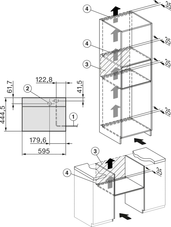 - Maximum niche width in mm 568