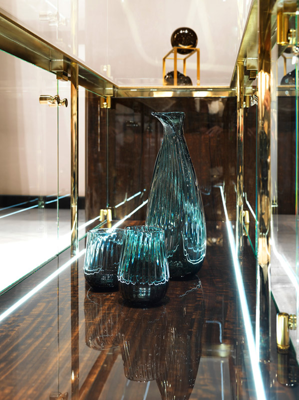 Carafe and glasses made in precious Murano glass with intense hues, all the pieces are blown and crafted by hand.