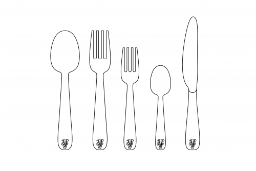 Stainless steel cutlery with punching Visionnaire coat of arms.