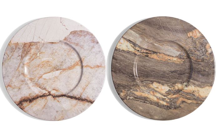 Hand-enamelled majolica plates with photo ceramic firing application diam. 35 cm Available in Patagonia or Fusion.