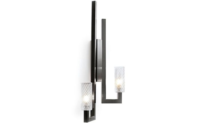 Wall light in combination of Venetian streaked "Murano"' blown glasses and satin black nickel stainless steel structure.