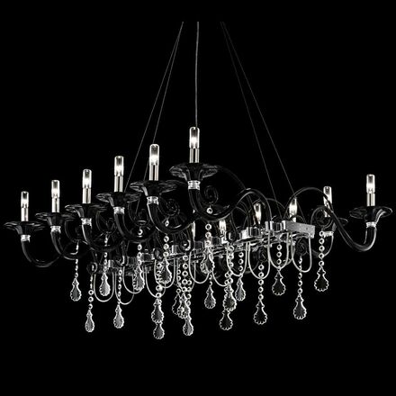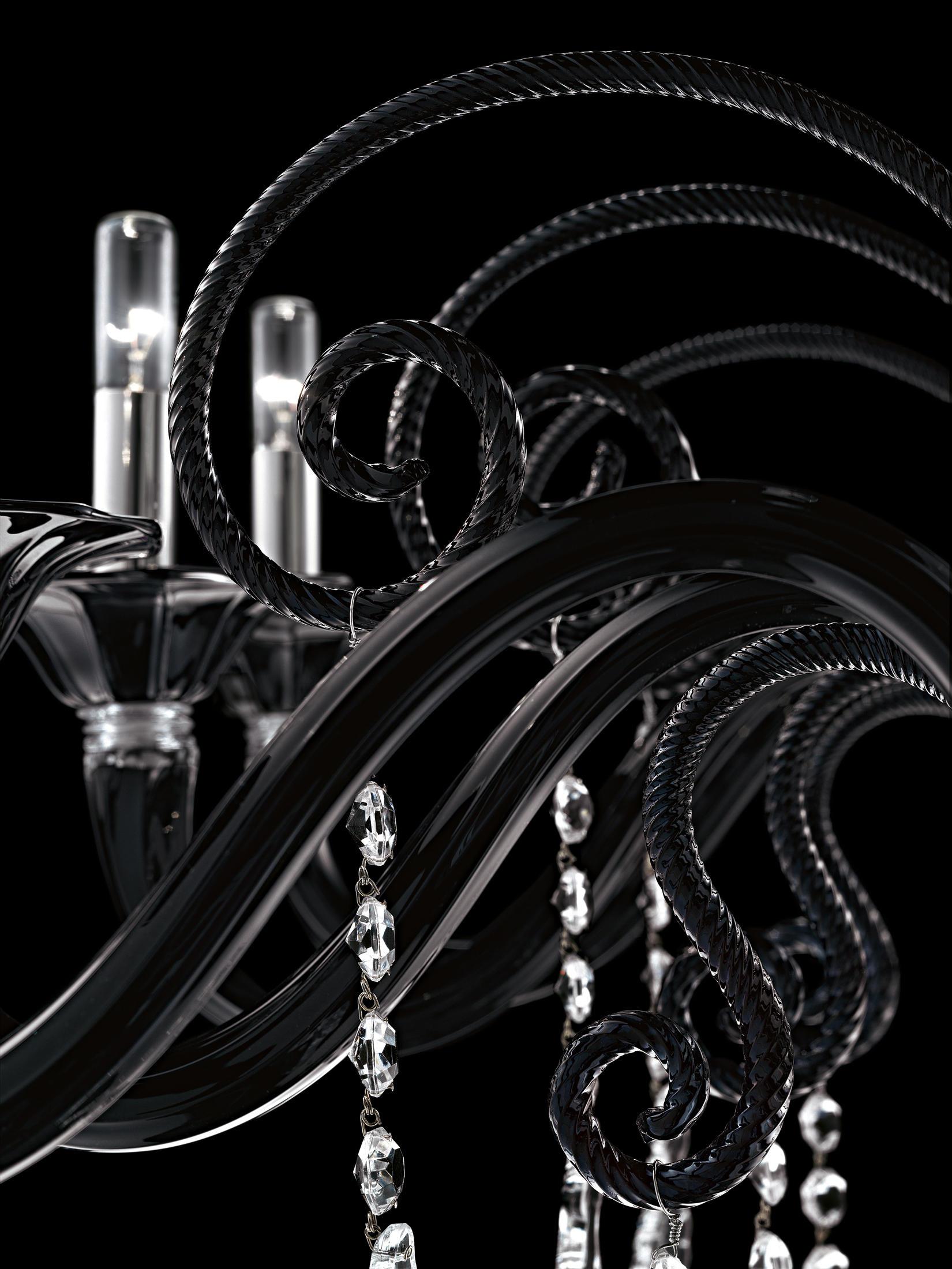 Decorated in black, the Barovier&Toso Mood Taif ceiling lamp by Franco Raggi is a bold combination of modern elegance and functionality. Twelve lamps provide abundant illumination, making it the central element of the lighting scheme of the room. While the combination of glass and metal embodies durability and quality, the black color gives the lamp expressiveness and depth, making it an outstanding element of any interior. The use of such a lamp provides ample opportunities for interior decoration, from office spaces to living rooms or halls. It will fit into spaces with a pronounced personality, such as lofts or art deco interiors, where black is not just a design decision, but part of the concept of the space.