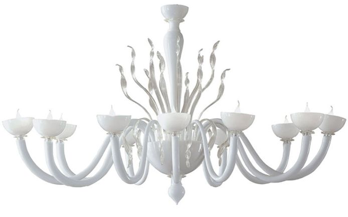 Venetian "Murano" blown glass oval chandelier in white colour. 16 lights and Venetian "Murano" gold blow glass inserts.