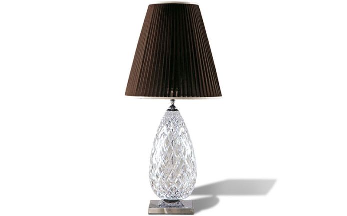 Lamp with base in combination of Venetian “Murano” clear blown glass and chrome stainless steel. Shade in brown silk.