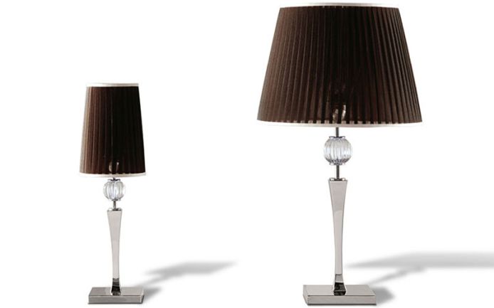 Lamp with Venetian "Murano" clear blown glass ball. Chrome stainless steel base. Shade in black/brown silk.