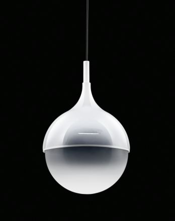 The pendant consists of a white, gold or chrome-colored glass dome and a white glass diffuser. Metal construction with white finish.