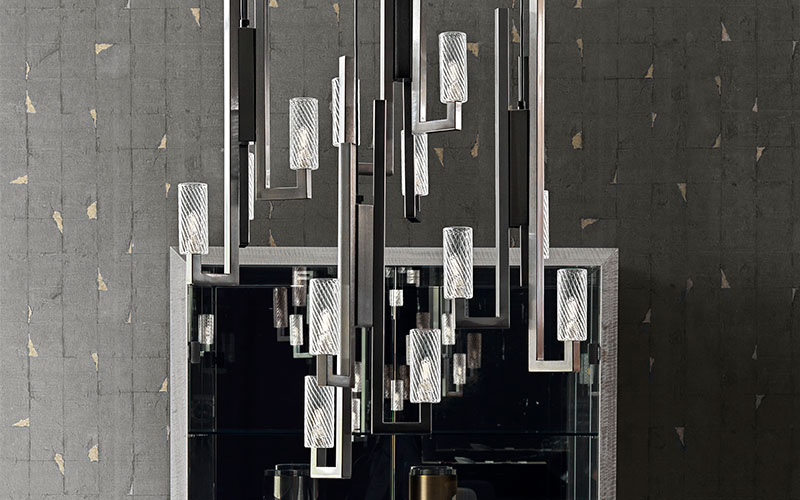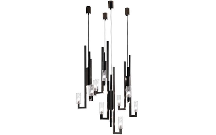 Chandelier with satin black nickel stainless steel scructure with inserted Venetian "Murano" clear blown glasses.