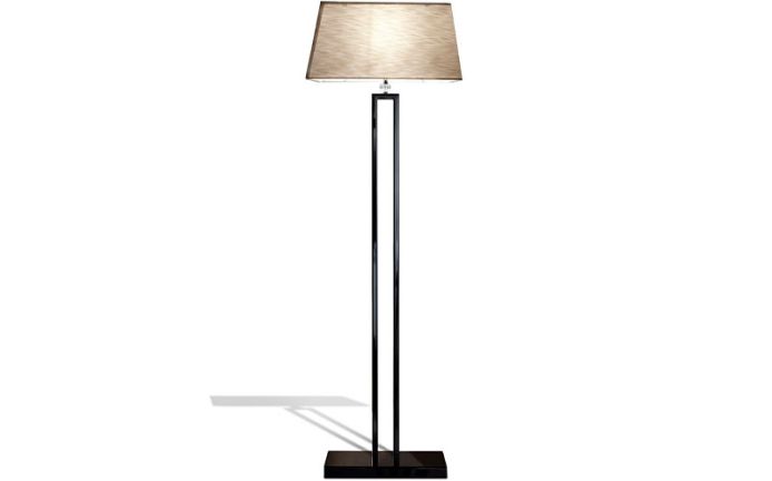 Floor lamps in stainless steel in storm dark grey finish with shade in beige silk.