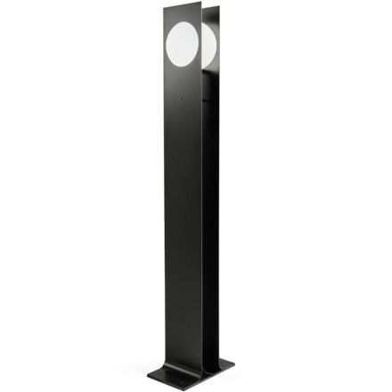 A floor lamp with an attractive design, which recalls the spotlights used on film sets. Composed of an aluminium structure with a black finish and an opaline glass shade, Globe scenically completes the furnishings of the living area.