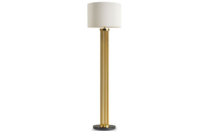 Elegant contemporary floor lamp with gold bath finish.
