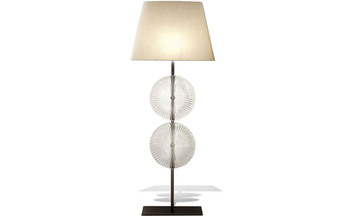 Glass sculpture Floor lamps made in combination of Venetian "Murano" blown glass and chrome stainless steel. Shade in goldish silk.