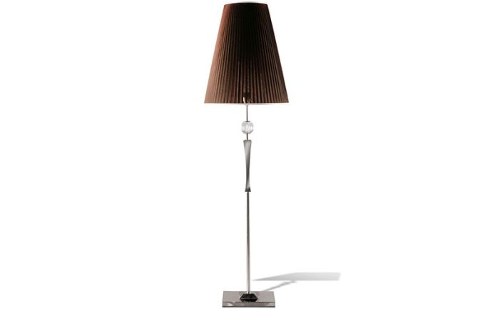 Floor lamps wIth Venetian "Murano" clear blown glass ball. Chrome stainless steel base. Shade in brown silk.