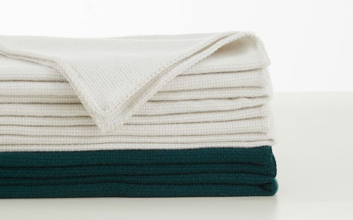 An elegant blanket, with a cosy enveloping feel and look. Weft and warp create a rich, soft structure enriched by a sophisticated detail of tone-on-tone blanket stitching round the edge, reminiscent of sartorial excellence.