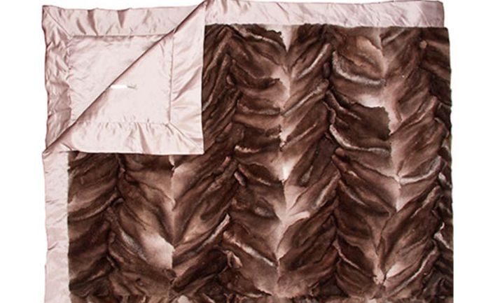 Natural silver fox blanket with fabric cover and edge fold.