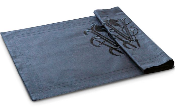 Dimensions 50x50 cm. Napkin with Visionnaire coat of arms embroidered on black satin.
