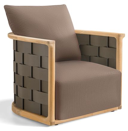 The curved backrest seems to embrace the user, reinforcing the idea of protection and cozy comfort. The backrest can be made of teak wood or EVA polyurethane, the cushioning of the seats provides enveloping comfort.