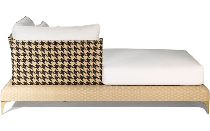 Chaise-longue hand-woven in synthetic rattan. Main structure in aluminium truss with backrests joined to the base by means of mechanical fastenings (fixed as per project).