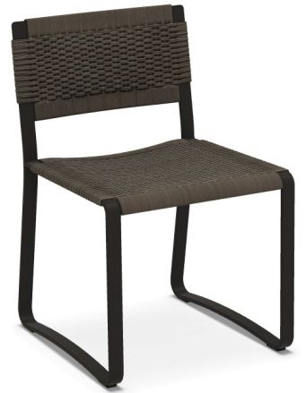 The seat frame is made of polished painted aluminum, the bend of the tape repeats the shape of the backrest and base with dynamic, movable and angular profiles. A dense cover made of handmade polypropylene rope is woven into the metal frame.