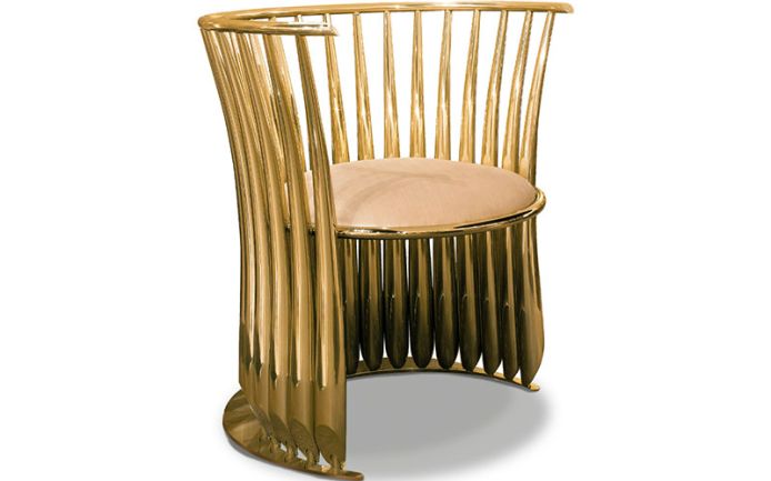 Main structure made of curved cone chromed steel with crown connecting in aluminium at the extremity of the cones. Decorative oval plates in brass with Visionnaire coat of arms.