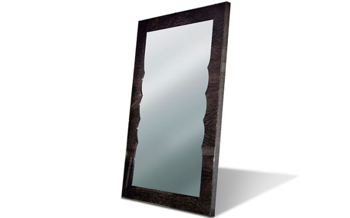 Floor mirror in moka japanese tamo burl veneer in high gloss polyester finish.