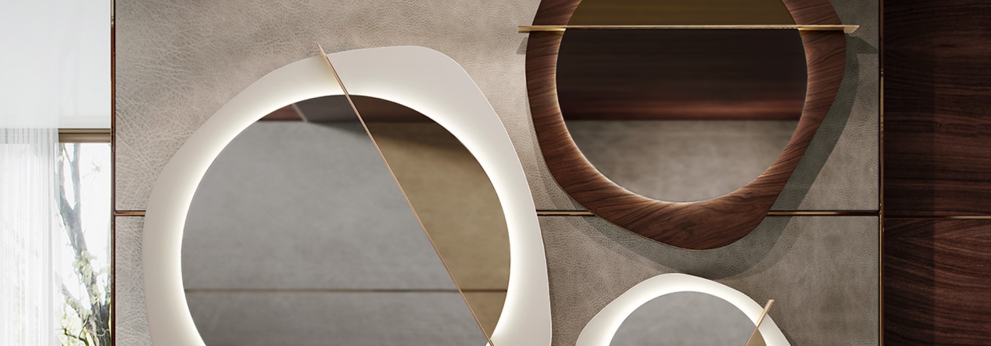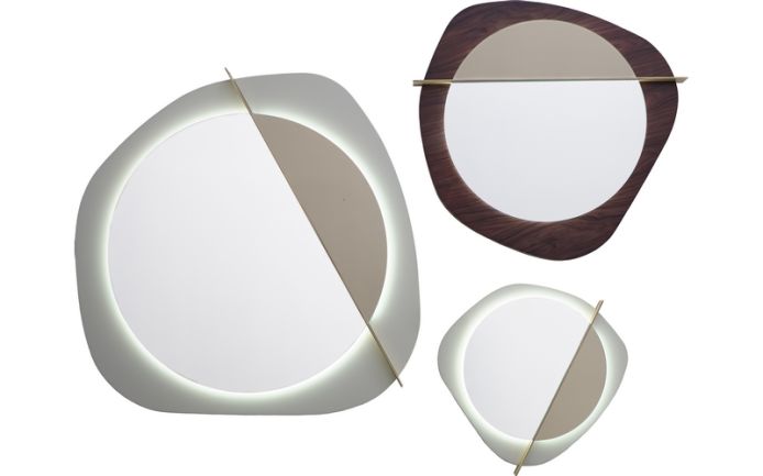 Mirror made of brushed rosewood or brushed tobacco rosewood, details made of brushed bronzed steel.