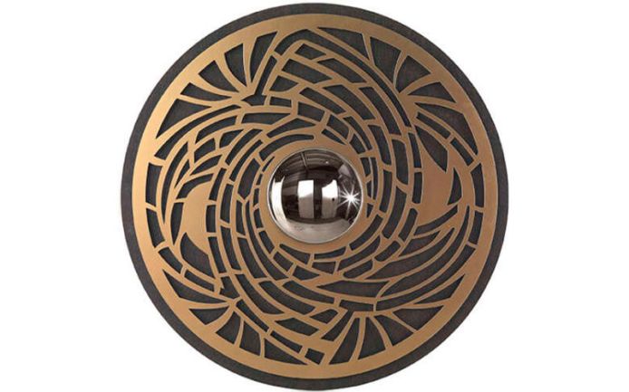 Structure in multilayer wood covered in eco-leather from the collection or with glossy/matt lacquered finishing from the collection. Decorative panel in laser-cut metal in the finishings from the collection. Convex natural mirror.