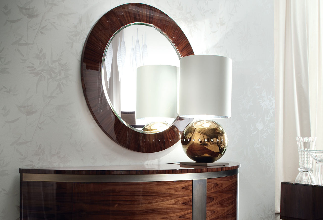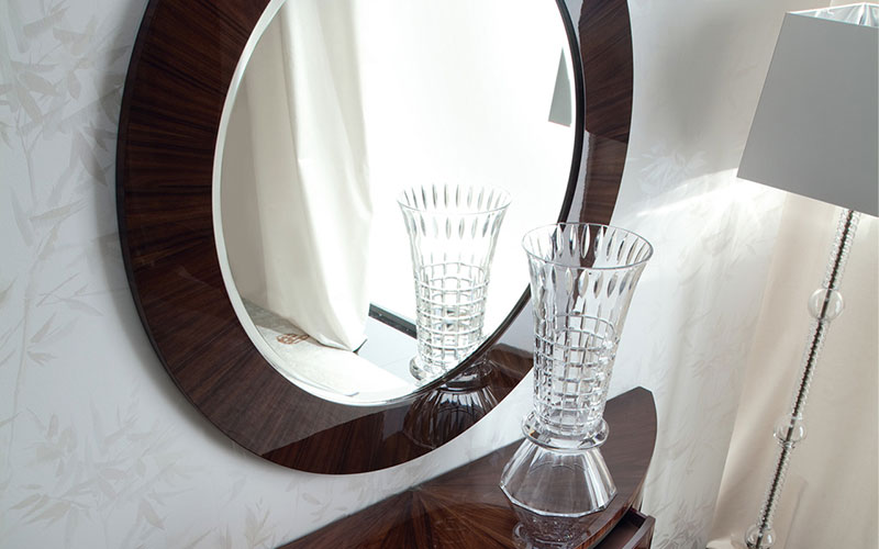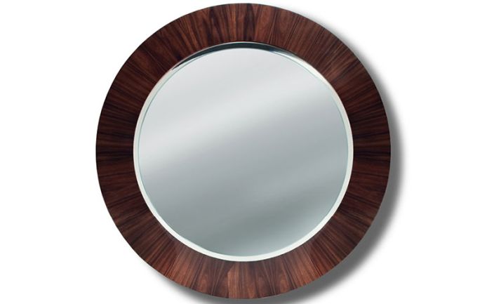 Beveled mirror finished in Brazilian rosewood veneer with high gloss polyester finish.