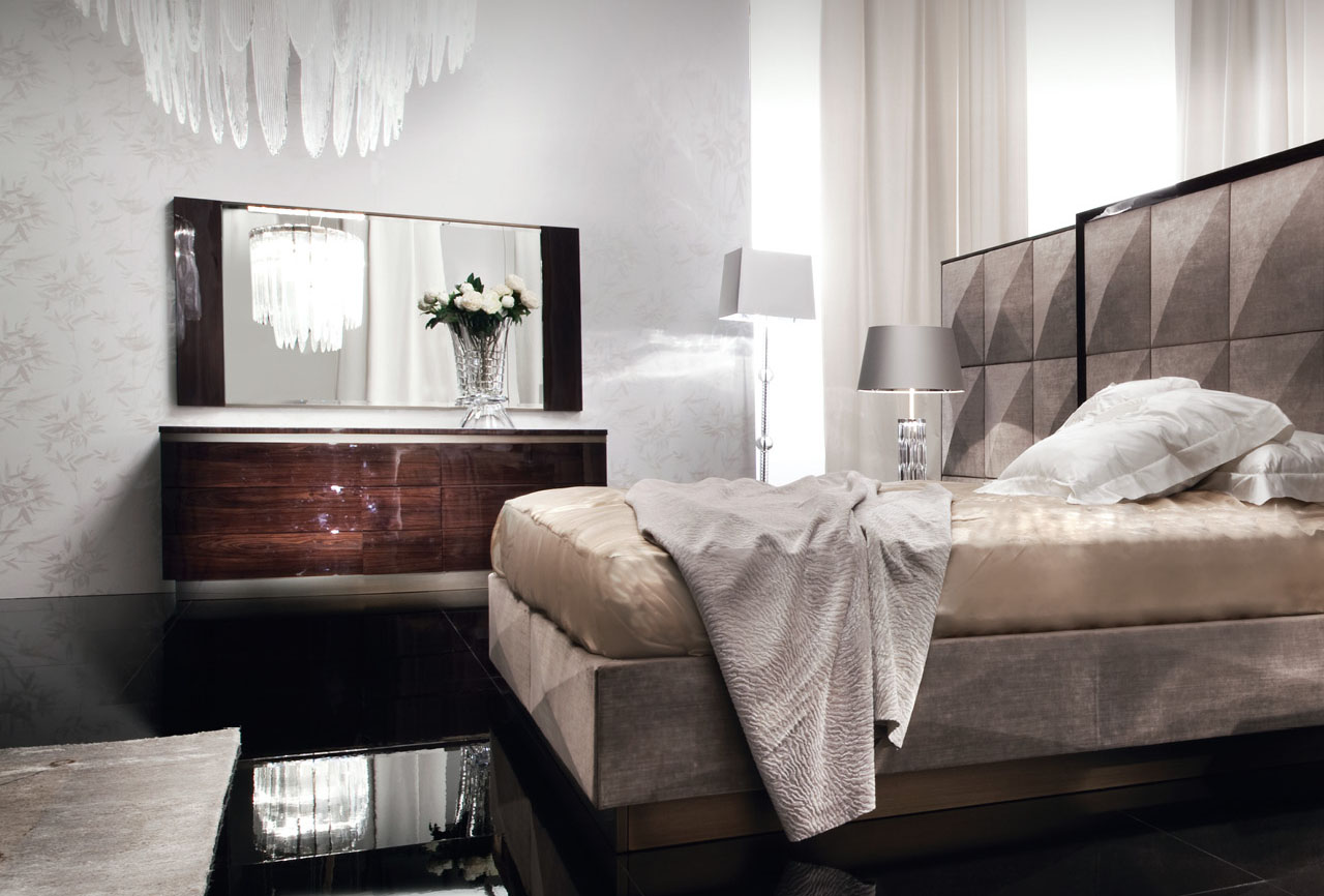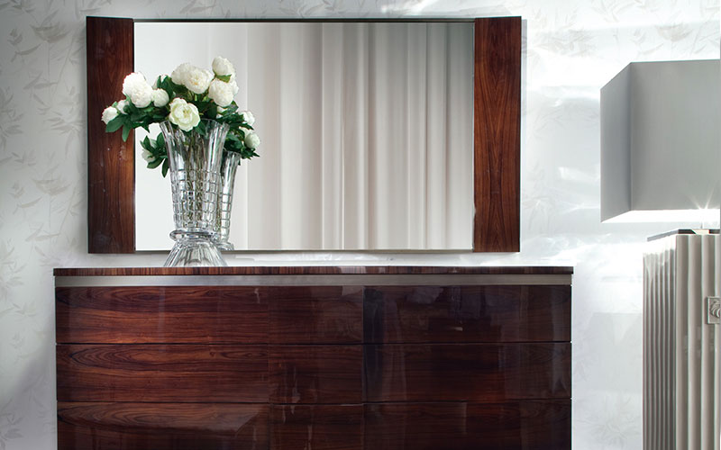 Beveled mirror finished in Brazilian rosewood veneer with high gloss polyester finish.