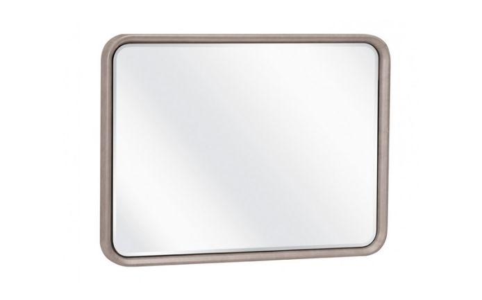 Rectangular mirror in a leather or fabric frame.