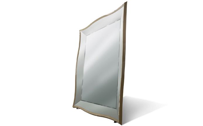 Floor mirror with frame in high gloss polyester lacquer. Outer frames in beveled mirrors.