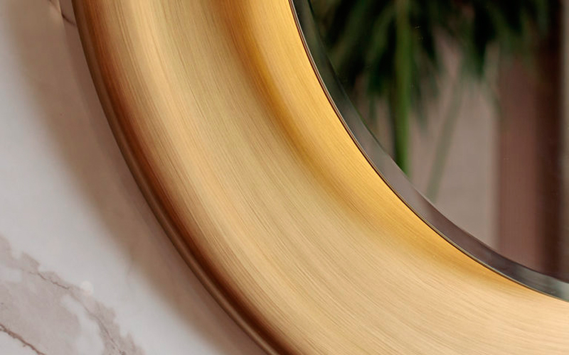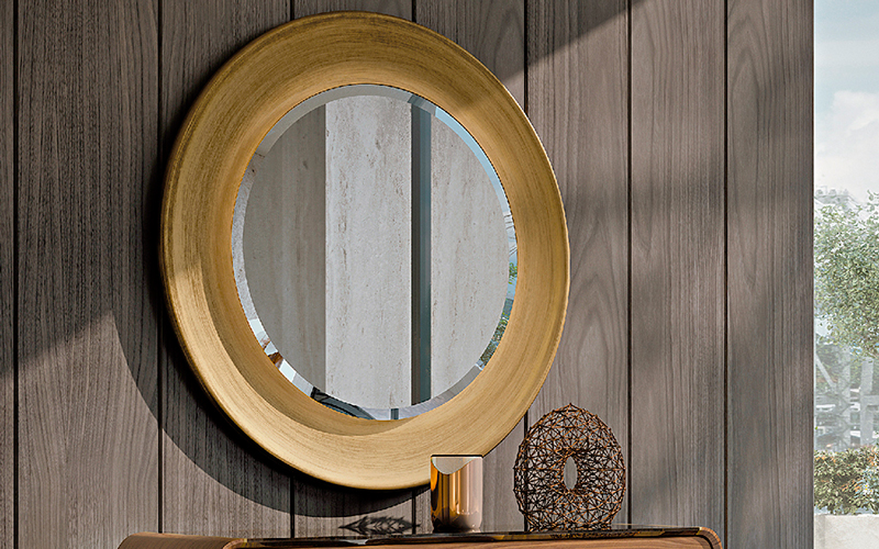 The mirror of the Melting Light collection has a modern design, the round structure is slightly concave, made of wood with a satin gold or satin bronze finish and equipped with LED lighting. The Melting Light collection mirror is available in various finishes according to the samples.