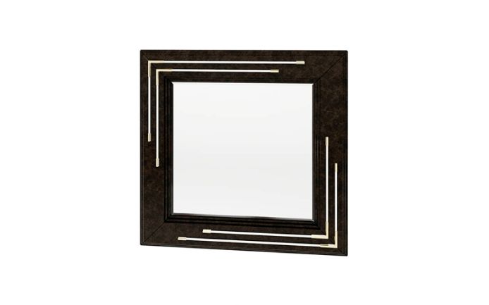 The mirror of the Noir collection is available in a rectangular or square version, has a wood structure with a glossy lacquer finish and the use of leather cords and light gold metal details on the surface. The mirror of the Noir collection is available in various finishes according to the samples.