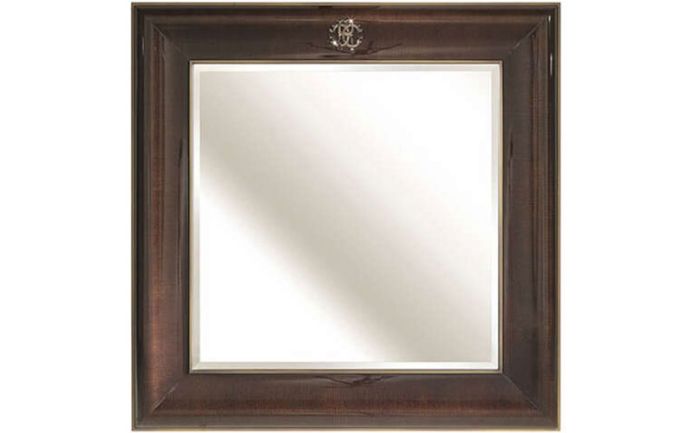 Multilayer wood structure veneered in essence from the collection. Metal frame in the brushed finishings from the collection. Bevelled natural mirror. RC “jewel monogram” in cast brass in platinum or gold finishing.