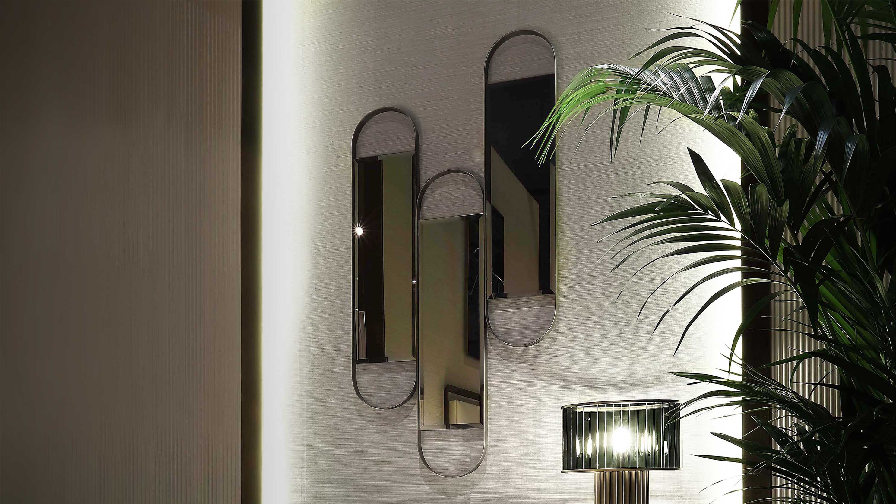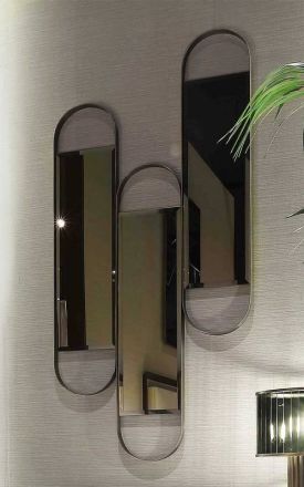 Oval bronze frame with rectangular mirror; two or more mirrors can be assembled together to create compositions.