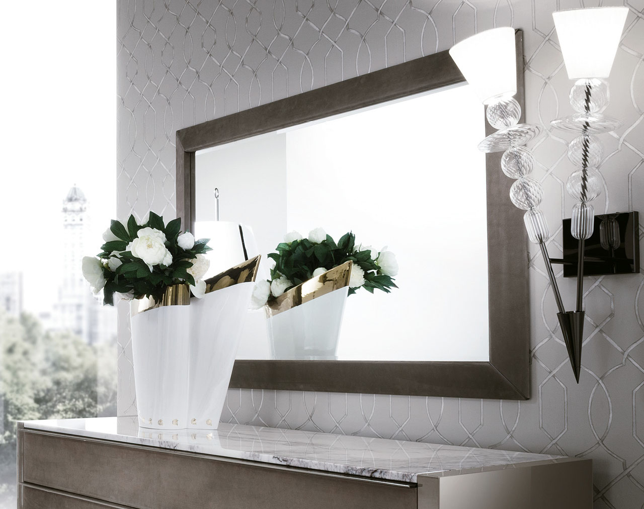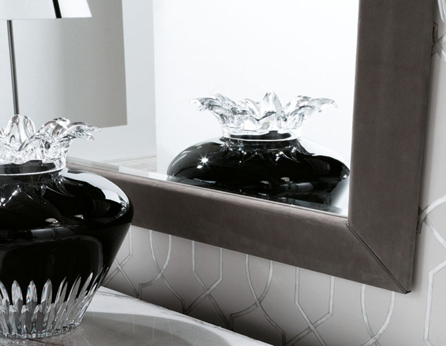 Floor mirror in natural protected nubuk leather. Beveled mirror in tempered glass.
