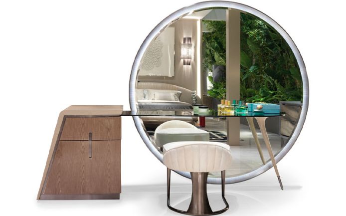 Frame in satinized stainless steel with conical border. LED lighting on perimeter with touch sensor. Metal parts available in the satinized metal finishing selection.